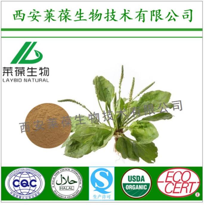 【产品简介】全草含车前甙(Plantago astiatice L)桃叶珊瑚甙(Aucnbin).乌苏酸(Uraolicacid).B-谷甾醇、正三十一烷、棕榈酸B-谷甾酸酯、棕酸豆甾醇酯、维生素B、维生素C、以及车前果胶(Plantaglusidc)(系由D-半乳醛酸甲酯.D-半糖、L-阿拉伯糖、L-鼠李糖等组成)。蛋白质、琥珀酸、腺嘌呤、胆硷、梓醇、硬质酸、花生酸、亚麻酸、亚没酸等脂肪酸。